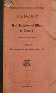 Read Online Report of the Chief Inspector of Mines in Mysore... Reader online is a convenient and frugal way to read Report of the Chief Inspector of Mines in Mysore... you love right from the comfort of your own home. Yes, there sites where you can get Reader "for free" but the ones listed below are clean from viruses and completely legal to use.