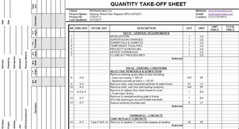 Read Online taking off sheet example quantity surveying Kindle Editon